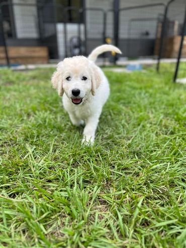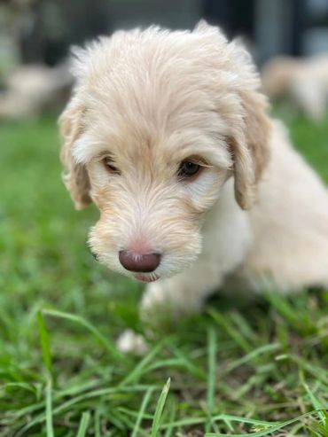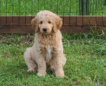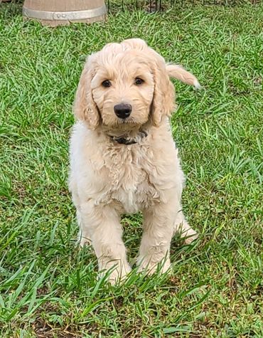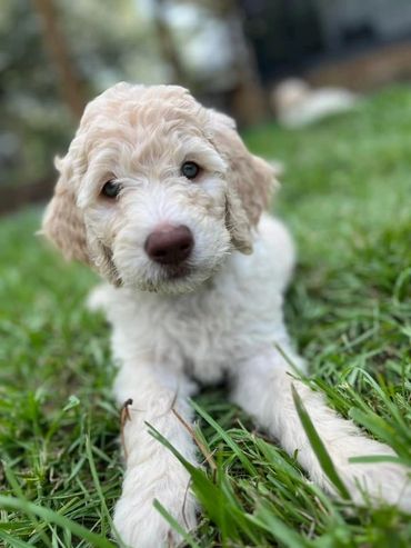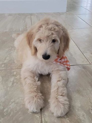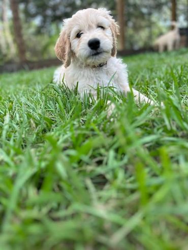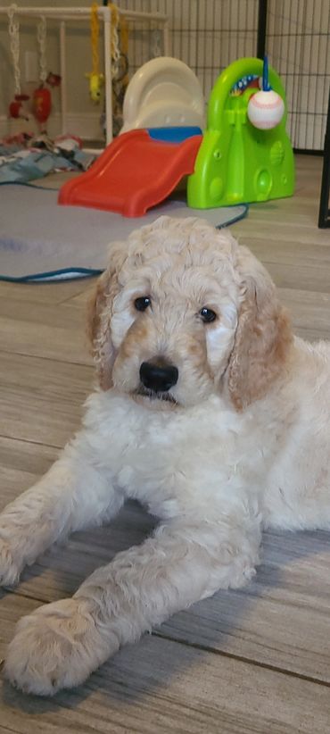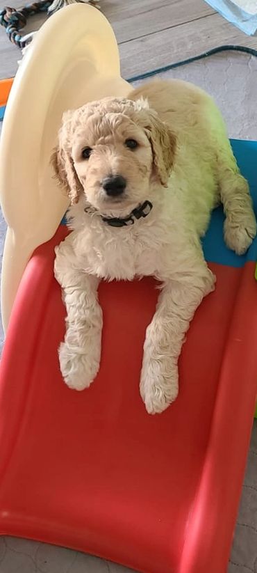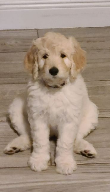 Shiloh(mom) is an F1 English Cream Goldendoodle. She is sweet, goofy, loving and super smart. She is playful and adventurous. She has been a blessing to our family.