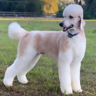 We expect for Shiloh and Samson's puppies to be between 50-60 lbs. with a hypo allergenic coat. They both carry genes to produce different coloring and coat types but most should be White, Cream, or Apricot with Wavy or Curly coat and full furnishings.