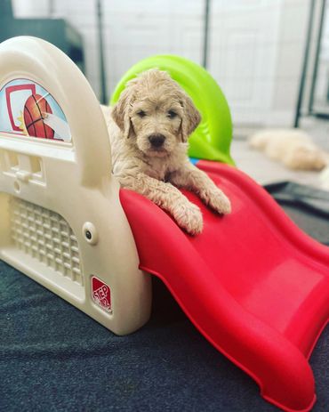We are a dog loving family looking to share our obsession for the most amazing companions. This particular litter are English Cream Multigenerational Standard Goldendoodles, which are the preferred generation of Goldendoodles for families seeking the best chance at a non shedding, hypoallergenic doodle with a soft curly to wavy coat. Please click on the links at the top of the page for a full genetic report for both parents.